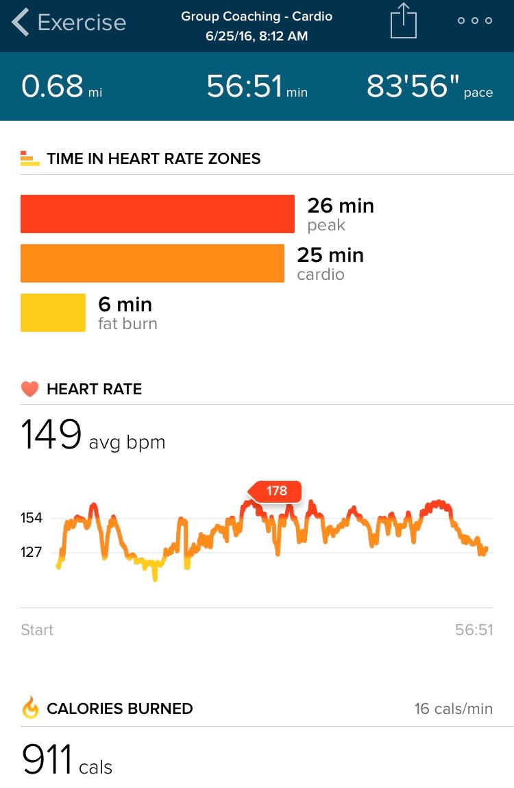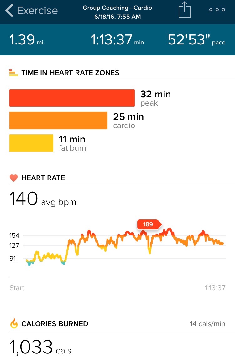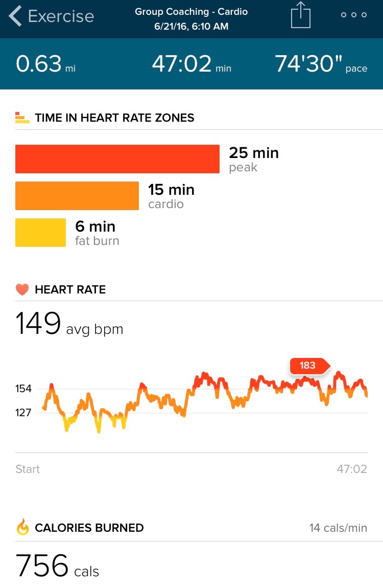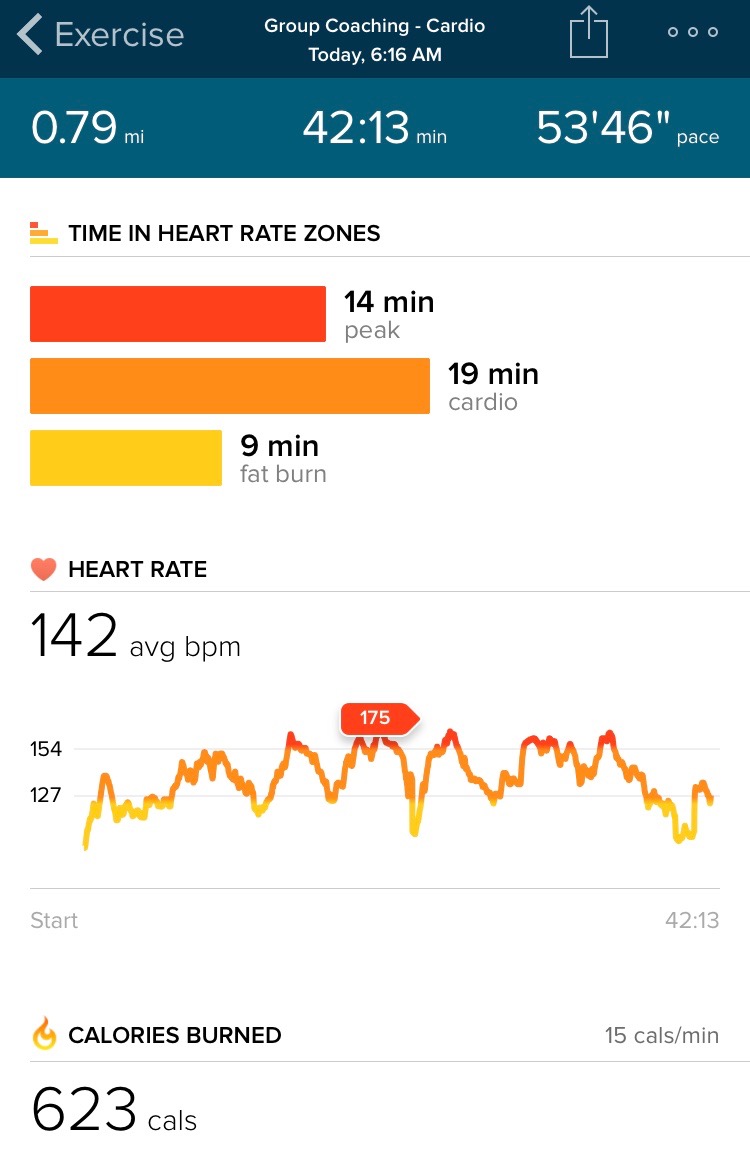 You can see the intensity from my Fitbit alone; the number of minutes spent in “peak” heart zone for surpass any workouts I’ve done from the past. During these peak moments, I am filled with breathlessness, desperation, and anxiety. You can see here the intensity of these workouts: