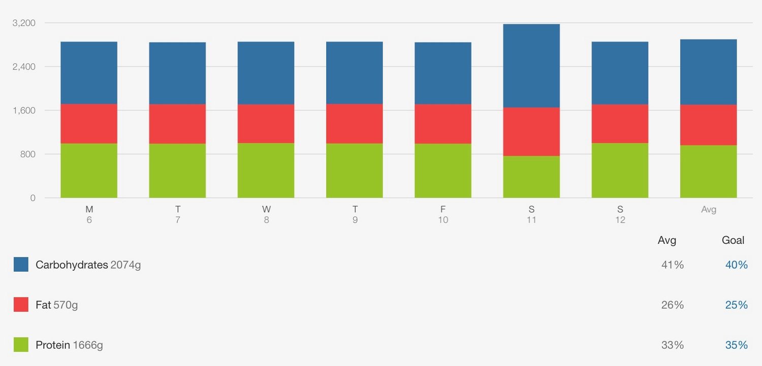This week, I’ve already loaded up my entire meal plan into MyFitnessPal. Now I know for the next seven days exactly what I will be eating, when I’ll be eating it, and how much I will be eating. I figured out what I wanted for “refeed day” and programmed that in with higher carbs and allocated a slight calorie increase for that day.